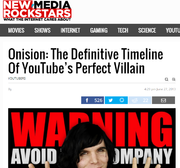 | 18:31, 4 December 2015 | YouTubesPerfectVillainOrigin.png (file) | 176 KB | Admin | New Media Rockstars article, origin of "YouTube's Perfect Villain" title http://newmediarockstars.com/2013/06/onision-the-definitive-timeline-of-youtubes-ultimate-villain/ | 1 | |