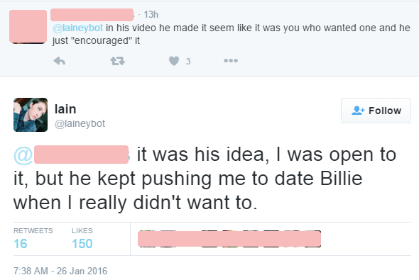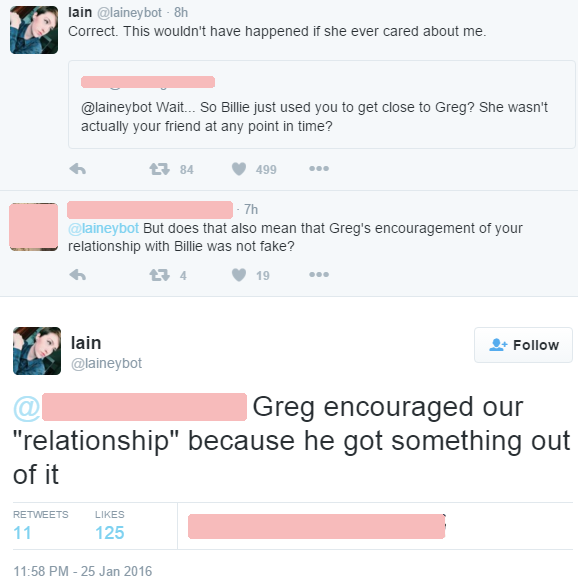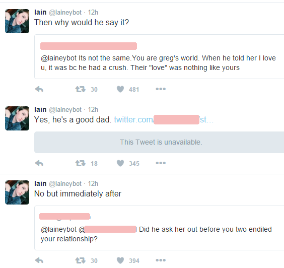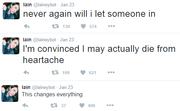 | 19:22, 29 January 2016 | Heartache012316.png (file) | 45 KB | Admin | Lain tweets about being heartbroken after finding out Greg cheated, January 23, 2016 | 1 | |