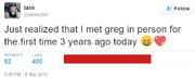 | 19:48, 29 January 2016 | Crying012416.png (file) | 47 KB | Admin | Greg and Lain tweet about crying, January 24, 2016 | 1 | |
