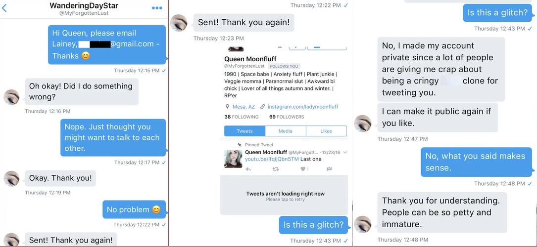| 18:51, 25 March 2017 | MoonfluffEarlyTweets.png (file) | 105 KB | Admin | Some of Moonfluff's early tweets about Greg, January 2017 | 1 | |