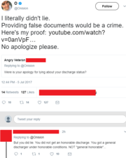 | 09:02, 15 October 2017 | MilitaryLie.png (file) | 60 KB | Admin | Greg defends himself from claims he lied about his discharge status (he did tho) July 5, 2017 twitter | 1 | |