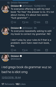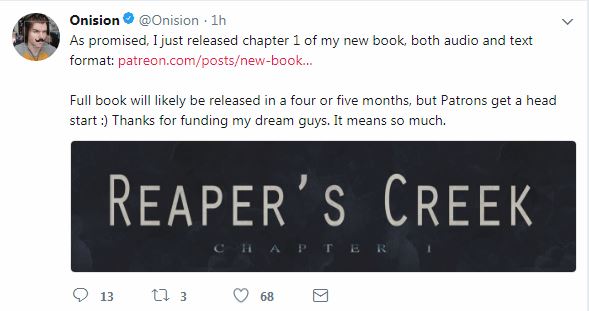 | 12:03, 17 August 2018 | Reaper's Edit Twitter.png (file) | 277 KB | Admin | Greg responds on twitter to fans offering to edit Reaper's Creek for free due to how many mistakes there were in the first few chapters. February 12, 2018 | 1 | |