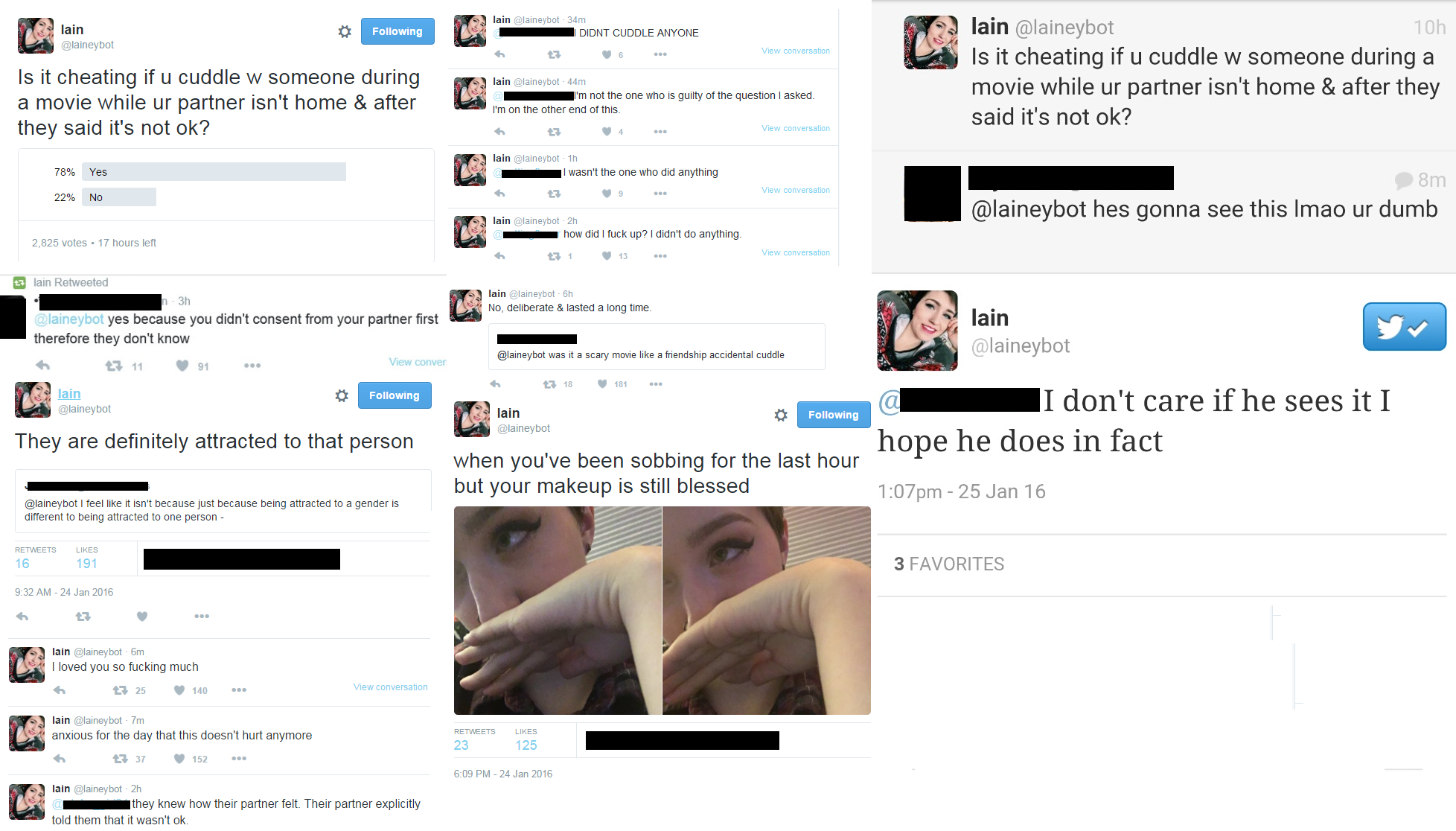| 10:20, 5 March 2019 | LaineyReveal1-25-16.png (file) | 285 KB | Admin | Lainey reveals more information about Greg's cuddle cheating with Billie, January 25, 2016 | 1 | |