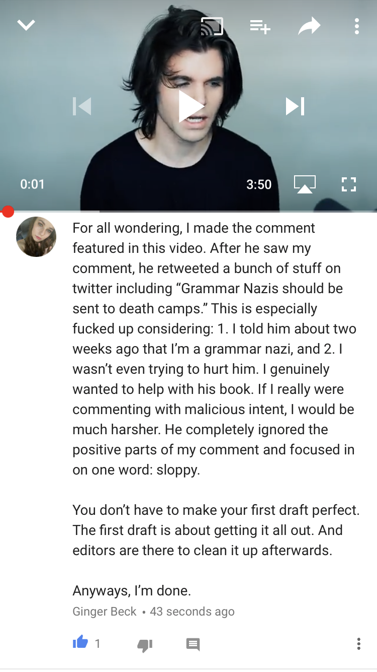 | 12:58, 17 August 2018 | Reapers Beck YT Comment.png (file) | 902 KB | Admin | Beck defends herself in the comments of the video "Don't Read Onision's Books" February 2018 | 1 | |