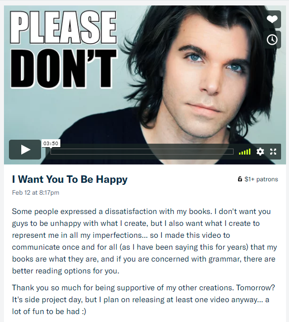 | 12:56, 17 August 2018 | Reapers Patreon Comments.png (file) | 673 KB | Admin | Heated discussion cause by Beck offering to edit Reapers Creek for free on Patreon February 2018 | 2 | |