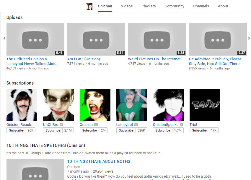 | 17:43, 30 April 2018 | ShilohReupload2018.jpg (file) | 56 KB | Admin | Greg randomly re-uploads a video with Shiloh to his Onision channel Mar 31st, 2018 | 1 | |