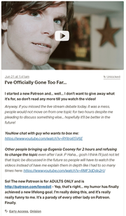 | 09:53, 28 June 2019 | IveOfficiallyGoneTooFar 6-21-19.png (file) | 370 KB | Admin | June 21, 2019 Patreon post explaining the Julia Patreon | 1 | |