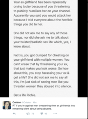 | 15:15, 20 November 2019 | BillieDemands01202017.jpg (file) | 137 KB | Admin | Billie leaks texts between her and Greg where he comes up with demand to allow her to come back, January 20, 2017 | 1 | |
