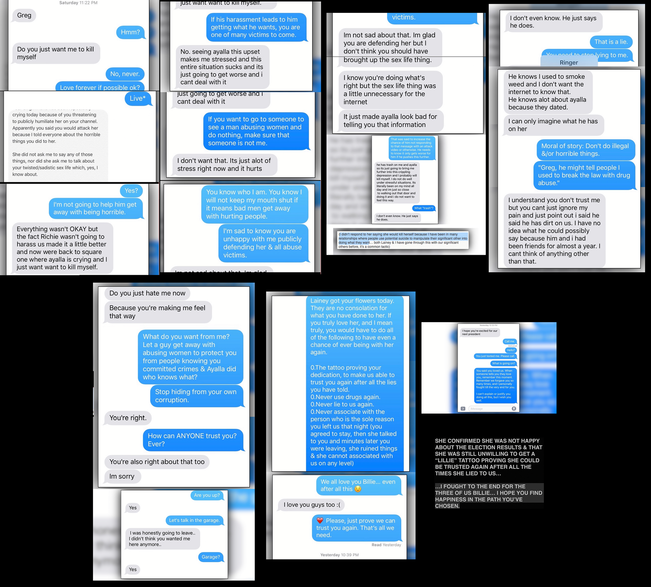 Greg shows a text conversation he had with Billie about the information he leaked about Social Repose, from the video "We Broke Up", November 5, 2016