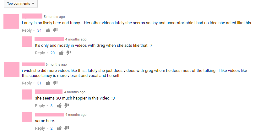 | current | 18:14, 16 March 2017 | 812 × 430 (35 KB) | Admin (talk | contribs) | Example of top comments on a Laineybot video without Greg |