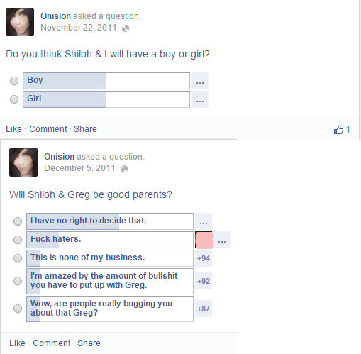 Greg makes polls about his unborn child and parenting abilities in 2011